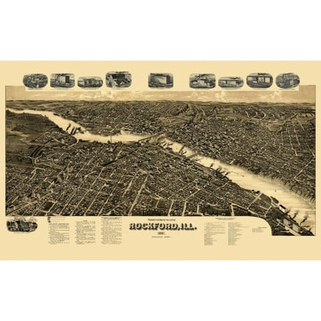 Vintage Map Of Rockford Illinois 1891 Winnebago County Poster