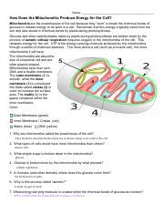 Mitochondria Worksheet Answers